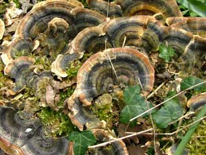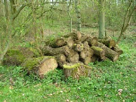 Small stacks of cut wood and brush are left to decay to maintain environments for fungi and insects, etc. This is supplemented, especially in recent years, by creating dead hedges (barriers within the wood structure made from the larger branches of cut trees) and the planting of cut trees to increase the quantity of dead wood standing.