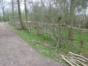 Cut wood is used to provide edging of the paths and car parks, periodically replaced as they rot away. Wood is also used for boundary fencing.